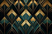 Een klassiek goud met turquoise motief. Dit werk is geïnspireerd door de vormen en het kleurenpallet van de Art Deco beweging. Het werk geeft een warme en klassieke uitstraling aan uw interieur!