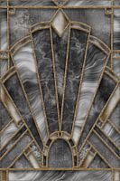 Art Deco stijl glas-in-loodramen met elegante goud effecten en grijs marmer en edelsteen texturen, voor liefhebbers van 1920's Gatsby stijl en vintage elegantie.