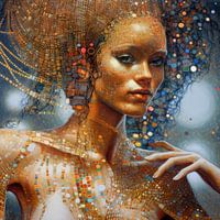 Dit digitale muur kunstwerk getiteld "Alessandra" uit de collectie digitale portretten van vrouwen Betoverende Schoonheid bevat een levendige en kleurrijke stijl, die doet denken aan de Art Nouveau-beweging uit het begin van de 20e eeuw. De patronen en vormen die gebruikt worden, zijn geïnspireerd op de elegante lijnen en organische vormen van de natuur. Deze kunstwerken zijn ook verfraaid met prachtige geometrische patronen en ornamenten, die een gevoel van luxe en rijkdom uitstralen. De verfijnde details en de zachte pasteltinten in sommige kunstwerken creëren een gevoel van romantiek en tederheid, terwijl de heldere en gewaagde kleuren in andere kunstwerken kracht en energie uitstralen. Al met al zijn deze digitale kunstwerken een eerbetoon aan de esthetiek en de geest van grote kunstenaars uit de Art Nouveau-beweging.