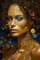 Dit digitale muur kunstwerk getiteld "Julia" uit de collectie digitale portretten van vrouwen Betoverende Schoonheid bevat een levendige en kleurrijke stijl, die doet denken aan de Art Nouveau-beweging uit het begin van de 20e eeuw. De patronen en vormen die gebruikt worden, zijn geïnspireerd op de elegante lijnen en organische vormen van de natuur. Deze kunstwerken zijn ook verfraaid met prachtige geometrische patronen en ornamenten, die een gevoel van luxe en rijkdom uitstralen. De verfijnde details en de zachte pasteltinten in sommige kunstwerken creëren een gevoel van romantiek en tederheid, terwijl de heldere en gewaagde kleuren in andere kunstwerken kracht en energie uitstralen. Al met al zijn deze digitale kunstwerken een eerbetoon aan de esthetiek en de geest van grote kunstenaars uit de Art Nouveau-beweging.