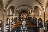 Jette, Brussels Capital Region - Belgium - 10 10 2019 Modern Gothic interior design of the Our Lady of Lourdes Roman Catholic church of Jette