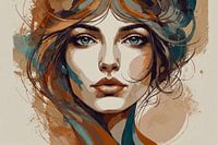 Stap binnen in de wereld van vloeiende vormen en oogstrelende kleuren met dit moderne kunstwerk. De vrouw, gevangen in een moment van serene contemplatie, straalt een mysterieuze schoonheid uit, versterkt door de abstracte vormen en lijnen die om haar heen dansen. De levendige blauwe en aardse tinten smelten samen tot een harmonieus geheel, waardoor de kijker uitgenodigd wordt om steeds weer nieuwe facetten in het schilderij te ontdekken. Dit stuk belichaamt de essentie van moderne kunst en is de perfecte aanvulling voor een stijlvolle slaapkamer of een eigentijdse eetkamer, waarmee het niet alleen een blikvanger is, maar ook een gespreksonderwerp.