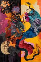 Een artistiek abstract kunstwerk met een overvloed aan kleuren en Aziatische tinten brengt een harmonie van culturen tot leven aan je muur. Met een spel van vormen en lijnen creëert het een boeiend visueel verhaal dat de verbeelding prikkelt. De levendige kleurenpaletten vloeien in elkaar over, waardoor een dynamisch en toch evenwichtig geheel ontstaat. Elk penseelstreek lijkt een verhaal te vertellen, een emotie uit te drukken, en nodigt uit tot diepere reflectie. Dit kunstwerk is niet alleen een decoratief element, maar een venster naar een wereld van expressie en culturele diversiteit, dat elke ruimte verrijkt.