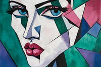 Fascinerende geometrie ontmoet expressieve elegantie: een boeiende portretstudie waarvan de helderblauwe ogen en sensuele lippen expressief in het oog springen. De felle kleuren en unieke vormen geven elke ruimte een dynamische sfeer. Ideaal voor de woonkamer, waar creativiteit en conversatie elkaar ontmoeten.
