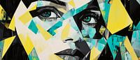 Heldere kleuren en veelzijdige vormen smelten samen tot een fascinerend portret waarin diepe, doordringende ogen centraal staan. De combinatie van zwart, geel en turquoise creëert een dynamische spanning die elke kamer verlevendigt. Dit kunstwerk komt vooral goed tot zijn recht in de woonkamer, waar het kan fungeren als een gespreksonderwerp en de stemming kan verhogen.