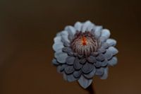 Een bloemen foto digitaal bewerkt tot het een grijze bloem werd op een amberkleurige achtergrond.