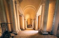 Dit is een foto van een prachtige artistieke trap in een meesterwerk van een villa. De villa staat in Italië en is al enige tijd verlaten. Wel zijn er sporen van renovatie maar dit lijkt nog niet erg te vlotten.