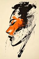 Een krachtig portret dat de emotie en kracht van vrouwelijkheid vastlegt met dynamische penseelstreken en fel oranje. De contrasterende zwarte en oranje tinten geven het kunstwerk een modern tintje. Perfect voor de woonkamer of een creatief kantoor om inspiratie en expressie aan te moedigen.