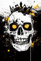 Hier ontvouwt zich een fascinerend samenspel van licht en duisternis: Een opvallende schedel, omgeven door krachtige, felle geeltinten, trekt meteen ieders aandacht. De gedurfde kleurencombinatie en expressieve gezichtsuitdrukkingen geven dit kunstwerk een uniek karakter dat perfect past in een trendy woonkamer of modern kantoor.