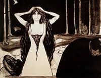 Munchs meesterlijke behandeling van lijn en negatieve ruimte doordrenkt de scène met een rauwe, oer-energie die spreekt over de meest fundamentele aspecten van het menselijk bestaan - geboorte, dood, seksualiteit en de strijd van de fragiele psyche om deze oerkrachten met elkaar te verzoenen.
