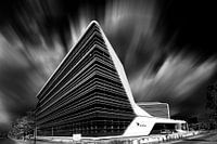 laboratoria en kantoorgebouw van Astellas in Leiden in zwartwit. ontworpen door UNStudio