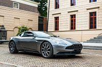 Aston Martin DB11 sportwagen rijdt op straat in Zwolle. De Aston Martin DB11 is een grand tourer die de samensmelting van luxe, prestaties en Brits vakmanschap belichaamt. Als opvolger van de DB9 is de DB11 een nieuw hoofdstuk in de designtaal en technische mogelijkheden van Aston Martin. Hij is leverbaar als coupé en als cabriolet (Volante) en biedt een opwindende rijervaring met een vleugje raffinement.