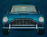 De Aston Martin DB5 is zowat de bekendste auto ter wereld, dankzij James Bond. Dit schilderij van zo'n Aston Martin toont de voorkant van de auto op een egale achtergrond. Als je dit in een interieur ophangt, scoort je zeker bij je bezoekers.