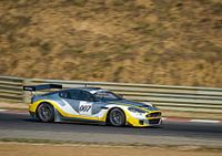 Aston Martin DBRS9 #007 Prodrive of Racing for Belgium rijdt door een bocht op het circuit van Zolder tijdens de 2007 Belcar race.