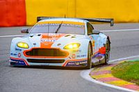 Aston Martin Racing Aston Martin Vantage V8 racewagen bestuurd door CASTELLACCI F. GOETHE R.HALL S. rijdend door de bocht van Spearker op het circuit tijdens de 6 Uur van Spa-Francorchamps race, de tweede ronde van het 2015 FIA World Endurance Championship.