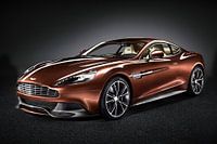 Aston Martin Vanquish, een Britse sportauto. Deze foto is zonder weerspiegeling. De Aston Martin Vanquish is voorzien van een V12 motor van bijna 6000CC.