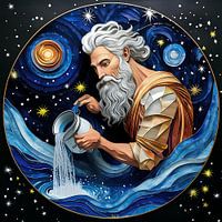 Astrologisch teken Waterman, element lucht. Digitaal schilderij. Geniet van deze afbeelding ingelijst aan de muur. De kunstenaar heeft deze afbeelding gemaakt met behulp van kunstmatige-intelligentietechnologie en vervolgens geperfectioneerd met een beeldbewerkingsprogramma.
