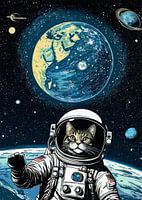 Astronautenkat in de ruimte met planeten op de achtergrond