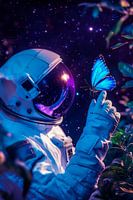 Een astronaut, omringd door gloeiende planten en een prachtige sterrenhemel, biedt een fascinerend contrast tussen technologie en natuur. De zachte glans van de blauwe vlinder benadrukt de magie van het moment. Deze dromerige voorstelling is prachtig voor een woonkamer of creatieve studeerkamer waar inspiratie en verwondering kunnen opbloeien.