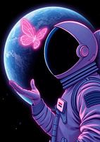 Astronaut en vlinder met aarde op de achtergrond