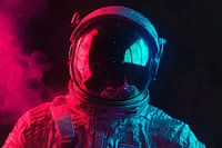 Een fascinerend samenspel van neonkleuren en een mysterieus aura omringt de astronaut, die klaar is om de oneindige uitgestrektheid van de ruimte in te duiken. De glinsterende helm weerspiegelt een futuristische wereld, terwijl het zachte licht een dromerige sfeer creëert. Ideaal voor een woonkamer die moet inspireren tot verwondering en filosoferen.