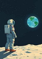 Astronaut kijkt naar de aarde vanaf het maanoppervlak