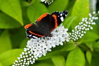 Deze prachtige vlinder is een atalanta. Ze zit op een witte troswederik. De atalanta is een in Nederland veel voorkomende vlinder. Ze heeft prachtige rood, wit en zwarte kleurschakeringen. Ze zijn prachtig om te zien.