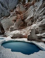 De prachtige bevroren waterval in Jasper National park in Canada. In hartje winter was het hier -30 graden waardoor alles bevroor. Alles stond hier even stil.