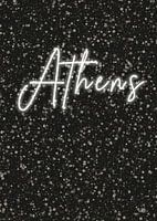 Engelse naam van de Griekse hoofdstad Athene in Suavaty verlichte letters op een donkere retro terrazo vloer