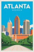 Koop dit landschapskunstwerk Atlanta, Georgia Vintage Reisposter van Poster Art Shop als print op canvas, aluminium dibond, (ingelijste) fotoprint, behang en ArtFrame. Voor jou op maat geprint in Fine-Art kwaliteit.