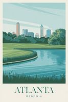 In sanften Grüntönen erblüht die Skyline Atlantas, umgeben von ruhigen Wasserflächen und üppiger Natur. Die harmonische Verbindung von städtischem Leben und idyllischer Landschaft schafft eine einladende Atmosphäre, die perfekt in ein Wohnzimmer passt, wo sie entspannte Gespräche und Erinnerungen an städtische Abenteuer fördern kann.