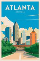 Een lichtgevend portret van Atlanta dat inspireert met moderne wolkenkrabbers en een stralende lucht. De harmonieuze kleuren en strakke lijnen brengen een gevoel van stedelijke vitaliteit en levensvreugde over. Perfect voor de woonkamer, brengt een frisse, uitnodigende sfeer en stimuleert gesprekken over reizen en avontuur.