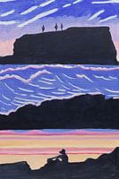 Atlantic coast van mijn vakantie in ai dream style een van de eerste in de serie, mijn vrouw op de rotsen