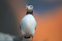 Papegaaiduikers in het laatste avondlicht Noorwegen