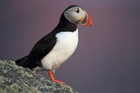 Papegaaiduikers in het laatste avondlicht Noorwegen