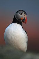 Papegaaiduikers in het laatste avondlicht Noorwegen