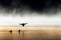 Atterrissage forcé d'un petit garrot sur un lac doré, Qc, Canada