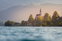 De pittoreske gemeente Atterssee aan het Attersee meer, in herfstachtig licht.
