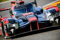Audi R18 e-tron quattro Le Mans Prototype race auto in de Les Combes bocht op Spa Francorchamps tijdens de 2016 editie van de zes uur van Spa van het FIA World Endurance Championship.
