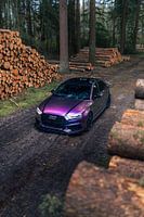Deze unieke foto toont een krachtige Audi RS3 die stil geparkeerd staat in het hart van een rustig bos. De glanzende lijnen van deze moderne sportwagen vormen een opvallend contrast met de natuurlijke schoonheid van de omringende bomen en het groene bladerdak. Het diepe zwart van de auto voegt een gevoel van luxe en mysterie toe, terwijl de natuurlijke achtergrond een serene en rustige sfeer creëert. Deze opname combineert de brute kracht en snelheid van de Audi RS3 met de kalme rust van de natuur, wat zorgt voor een visueel fascinerende scène.