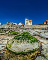 Het NoordFranse kustplaatsje Audresselles laat tijdens eb een eigenaardige rotsformatie zien. Op de rand een verbouwde bunker uit de serie van de zogeheten Atlantik Walle