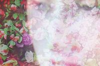 Augustus met roze rood en wit rozes . Collage gezicht bloemen zomer pastels