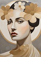 Dit opvallende kunstwerk, ontworpen als eyecatcher voor je huis, toont een elegant portret van een vrouw verweven met boeiende geometrische vormen en kleurrijke bloemen. Haar gelaatstrekken worden benadrukt door de strakke lijnen en vormen om haar heen, terwijl de bloemen een zachte en organische touch toevoegen aan het geheel. De combinatie van geometrie en natuurlijke elementen creëert een harmonieus samenspel van contrasten, waardoor het kunstwerk zowel eigentijds als tijdloos aanvoelt. Dit kunstwerk zal niet alleen de esthetiek van je ruimte verheffen, maar ook een verfijnde en boeiende atmosfeer creëren die de aandacht van elke bezoeker zal trekken.