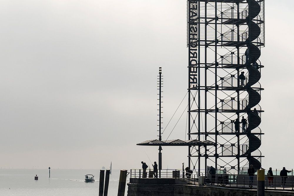 Friedrichshafen Baden Württemburg Germany Aussichtsturm Friedrichshafen / Moleturm viewing platform at the pier end. Silhouette.