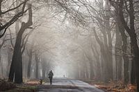Wandel en Mountainbike gebied in en rondom de bossen van Austerlitz! Een moody mistige ochtend wandeling met de hond en een mountenbiker op de achtergrond!