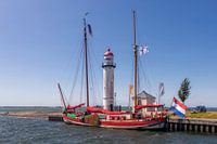 Authentiek zeilschip afgemeerd bij de vuurtoren van Hellevoetsluis aan het Haringvliet