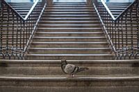 Authentieke Straatfotografie: Steenduif op een Trap – Rauw en Sfeervol Stadsbeeld van Elianne van Turennout