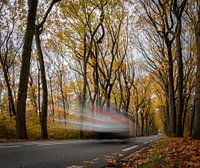 Koop de foto Auto die spookachtig door het herfstlandschap rijdt van Pieter JF Smit op canvas, aluminium dibond, (ingelijste) fotoprint, behang en ArtFrame, op maat geprint in Fine-Art kwaliteit.