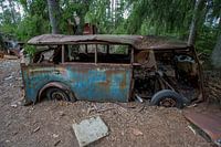 Koop de foto Auto kerkhof in bos in Ryd, Zweden van Joost Adriaanse als print op canvas, aluminium dibond, (ingelijste) fotoprint, behang en ArtFrame. Voor jou op maat geprint in Fine-Art kwaliteit.