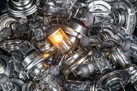 Een bergje autolampen waarvan er nog 1 brand. Een mooie plaat voor BV een automateriaal zaak of autobedrijf. Bij deze werken geld des te groter afgedrukt des te krachtiger ze worden.